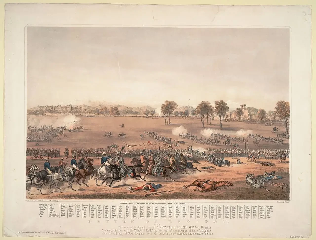 Дальше последовало всё то, что часто случалось в битвах, где командовал сэр Хью Гоф. Он посчитал, что сикхи укрепились на левом берегу реки Джелум, в 85 км от Лахора. Но, заняв деревню Чиллинвала, британцы увидели, что сикхи отошли с уязвимых позиций и сократили свой фронт. В общем, обойти их с фланга не удалось. После чего сэр Хью вздохнул с облегчением и послал войска в лобовую атаку. Дело было под вечер, но английский командующий опасался, что сикхи ночью станут обстреливать его лагерь.