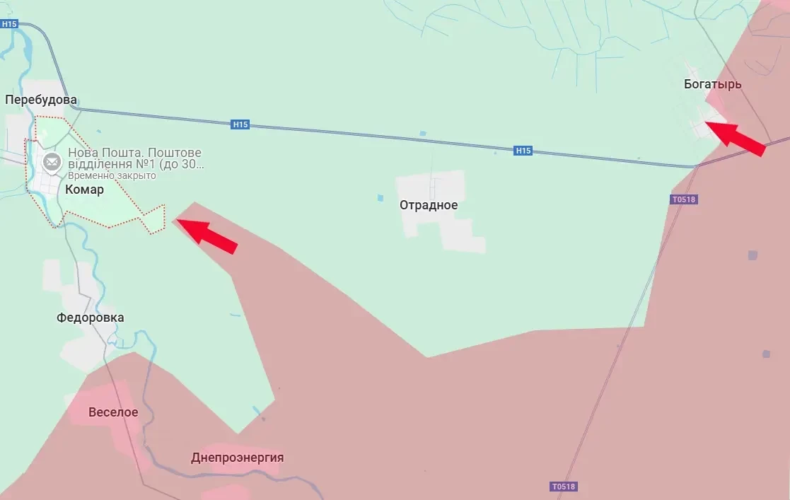 Село Комар находится у дороги Н15, которая ведёт в Запорожскую область. В то же время севернее Комара – граница Днепропетровской области, примерно в 8 км. Как только Комар будет освобождён, у наших войск появится возможность двигаться на основной узел логистики ВСУ на востоке Днепропетровщины – село Новопавловка, по которому сам противник теперь и называет это направление. При этом участок дороги Н15 у Комара уже перешёл под наш огневой контроль.
