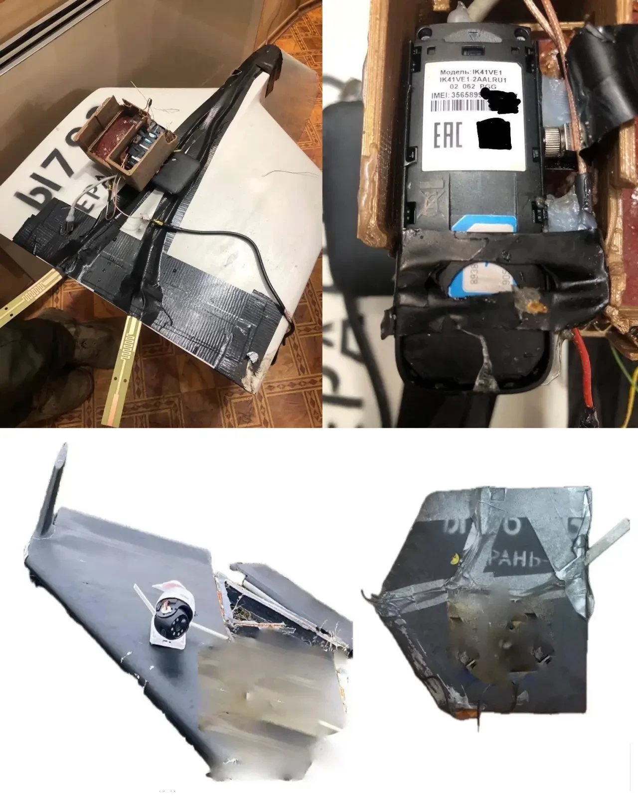 Видеокамера и аппаратура передачи данных, кустарно установленные на БПЛА-камикадзе «Герань-2»