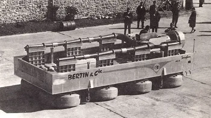 Кстати, о разработчике Terraplane. Французская контора Bertin & Cie была типичным стартапом в современном понимании. Разумеется, в реалиях середины 50-х годов прошлого столетия. Основатель Жан Бертен до поры до времени трудился в двигателестроительной SNECMA, а в 1955 году ушел на вольные хлеба, прихватив еще 15 сотрудников. Новообразованная Bertin & Cie стала первой во Франции, кому удалось построить машину на воздушной подушке. Только это был не наш герой BC7, а предшественник Terraplane BC4.