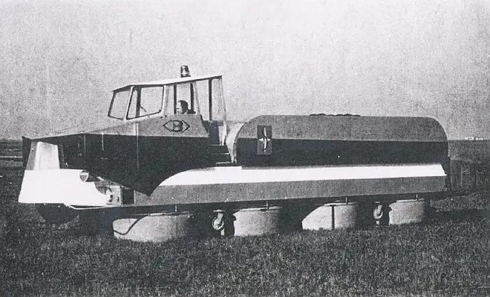 Для справки: в 1959 году британец Кокерелл на судне SR-N1 на воздушной подушке впервые пересек Ла-Манш. Это оказалось очень хорошей рекламой для многообещающей технологии, и энтузиасты по всему миру принялись строить аппараты, опирающиеся на воздушный поток. Жан Бертен к тому времени доводил до ума свою машину, которая оказалась сугубо экспериментальной, слабо приспособленной даже к реальной эксплуатации. Например, у изделия отсутствовала крытая кабина, а прожорливость силовой установки поражала воображение. Но очень хорошо показала себя система с восемью независимыми фартуками. Управление позволяло менять угол наклона, например, четырех передних в одну сторону, а кормовых – в другую.