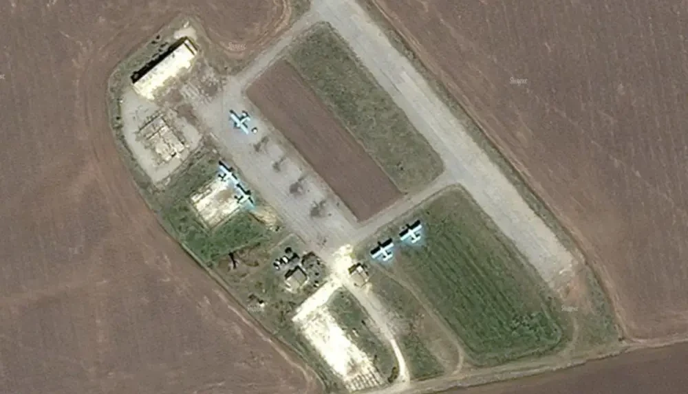 В сети есть снимки, сделанные с БПЛА в дневное время. На первом показаны четыре легкомоторных самолета, размещенных на данном аэродроме бывшего сельхозпредприятия. На втором отчетливо видны силуэты от четырех машин. Причем еще столько же стоят в стороне.