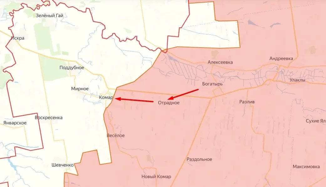 Напомним, что вышеупомянутый посёлок был освобождён российскими бойцами ещё 17 мая. После этого ВС РФ продвинулись дальше, полностью освободив Отрадное и выйдя на окраины Комара.