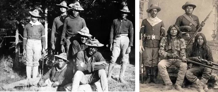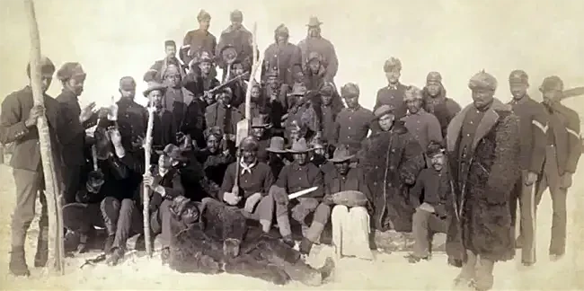 В 1866 году американский Конгресс учредил шесть полностью черных полков (вскоре объединенных в четыре), чтобы помочь восстановить страну после Гражданской войны и сражаться с индейцами на западной границе во время т.н. «войн на равнинах». Индейцы американских равнин, которые сражались против этих солдат, называли черные отряды «солдатами-буффало» (Buffalo Soldiers) из-за их темных вьющихся волос, которые напоминали им шкуру буйвола, и из-за их яростного характера боя. «Солдаты-буффало» имели самые низкие показатели дезертирства и военных трибуналов в свое время. Многие из них были удостоены Медали Почета Конгресса США (Medal of Honor) — награды, вручаемой в знак признания боевой доблести, которая выходит за рамки служебного долга. Герой этой статьи — 24-й пехотный полк был создан в 1869 году. Источник: свободный доступ