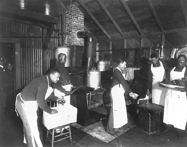 Солдаты Третьего батальона 24-го пехотного полка на армейской кухне в лагере Логан под Хьюстоном