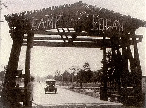 После вступления Соединенных Штатов в Первую мировую войну, правительство арендовало у штата территорию, которая находилась к западу от городской черты Хьюстона, для строительства там военного городка, рассчитанного на размещение примерно 40 000 солдат. Объект должен был быть назван лагерем Логан (Camp Logan) в честь генерал-майора Джона А. Логана, ветерана Гражданской войны и конгрессмена США. Всего за тринадцать дней сотни местных рабочих завершили основную инфраструктуру лагеря, превратив его в действующий учебный центр с больницей, почтовым отделением, палатками для размещения солдат, пекарней, столовыми, артиллерийскими стрельбищами, конюшнями и многим другим. Источник: The Houston Chronicle.
