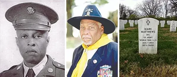 Марк Мэтьюз (1894–2005), старейший в стране «Солдат-Буффало», умер в 2005 году в возрасте 111 лет в Вашингтоне, округ Колумбия, и был похоронен на Арлингтонском национальном кладбище. Родившийся в Алабаме и выросший в Огайо, Мэтьюз присоединился к 10-му кавалерийскому полку, когда ему было всего 15 лет, после того как он подделал документы, чтобы выглядеть как человек, достигший минимального возраста 17 лет. Он в 1916 году участвовал в мексиканской экспедиции генерала Джона Дж. Першинга, заботился о лошадях президента Рузвельта и первой леди Элеоноры, он участвовал в боевых действиях в южной части Тихого океана во время Второй мировой войны и достиг звания первого сержанта. Покинув армию США, Мэтьюз устроился охранником в Мэриленде, дослужился до звания начальника охраны и вышел на пенсию в 1970 году. На момент своей смерти он был признан старейшим живым солдатом Буффало, а также старейшим мужчиной и вторым по возрасту человеком в округе Колумбия.