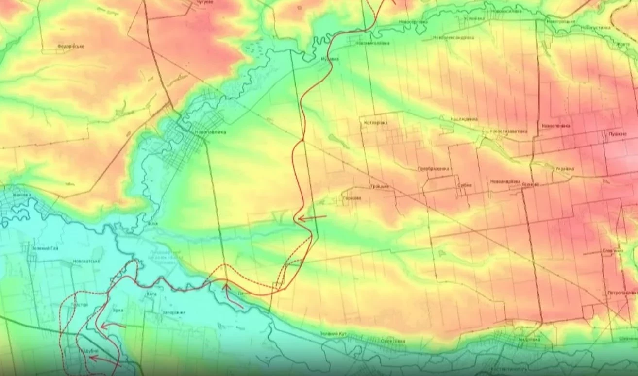 "И далее, развивая свой успех, выбивают противника из лесопосадок западнее этих населённых пунктов. Одновременно с этим наши войска зашли в Мирный, ну и таким образом мы видим, что мы движемся по направлению к Зелёному Гаю, соответственно, далее мы должны занять полностью всю эту излученную реку Волчьей, ну и далее выходить в тыл и фланг группировки противника обороняющейся в Новопавловке, в которой мы также не спеша приближаемся с востока, а наши части 41-й армии пока ещё не начали своего наступления здесь, тем не менее потихонечку лесопосадки здесь переходят под наш контроль и я думаю что сражение за Новопавловку уже не за горами", - проинформировал Подоляка.