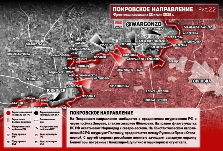 ВС РФ имеют успехи в районе Новоукраинки на Покровском фронте: свежие данные от 22.07.2025