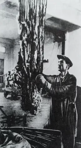 Стакан вынимали из реактора и, закрыв асбестовым одеялом, осторожно перевозили в отделение разделки. Там снимали дно стакана, и каучук под собственным весом сползал в емкости. Затем остатки металлического натрия в каучуке, которые обычно оставались в небольшом количестве, гасили водой, а потом тщательно промывали для удаления гидроксида натрия и других примесей.