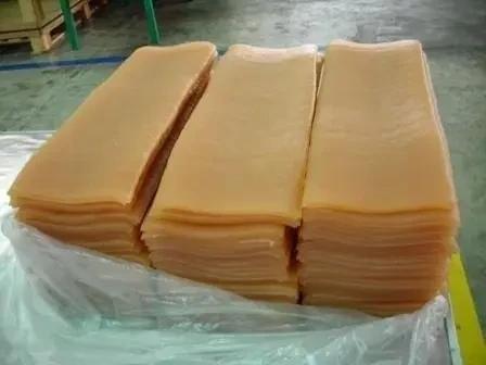 На фото немного другой вид синтетического каучука - бутадиен-стирольный и уже прокатанный в листы, но весьма похожий внешне на первоначальный синтетический каучук