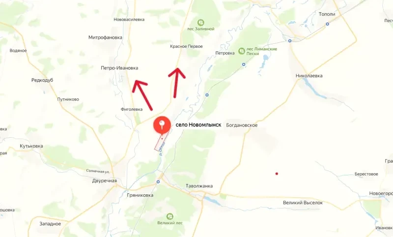 Штурмовые группы ВС РФ, совершив пятикилометровый бросок вдоль левого берега реки Оскол, взяли под свой контроль не только населенный пункт Новомлынск, но и господствующие высоты севернее этого села.