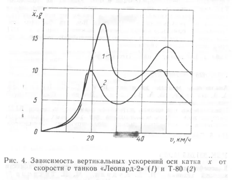 Следует, однако, учитывать, что фактические динамические перегрузки на катки танка «Леопард-2» при качении по серийной гусенице этого танка могут быть меньше за счет шахматного перекрытия зазора между траками.