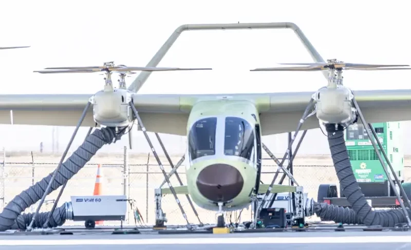 Опытный конвертоплан уже достроен, но пока не получил полноценную окраску. Недавно его вывели на открытую площадку для проведения наземных испытаний. Этот этап работ может занять несколько недель или месяцев, в зависимости от различных факторов.
