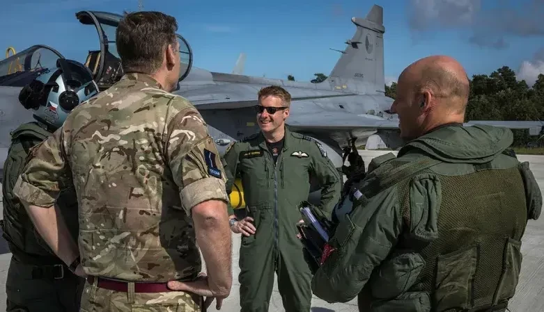 Военнослужащие Королевских ВВС Великобритании и ВВС Чехии на авиабазе Эмари в Эстонии в рамках миссии НАТО по охране воздушного пространства стран Балтии