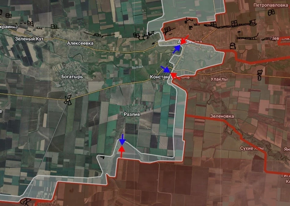 На Богатырском направлении продолжаются боестолкновения севернее Андреевки и в районе Константинополя, ВС РФ ведут штурмовые действия на южных окраинах Разлива.