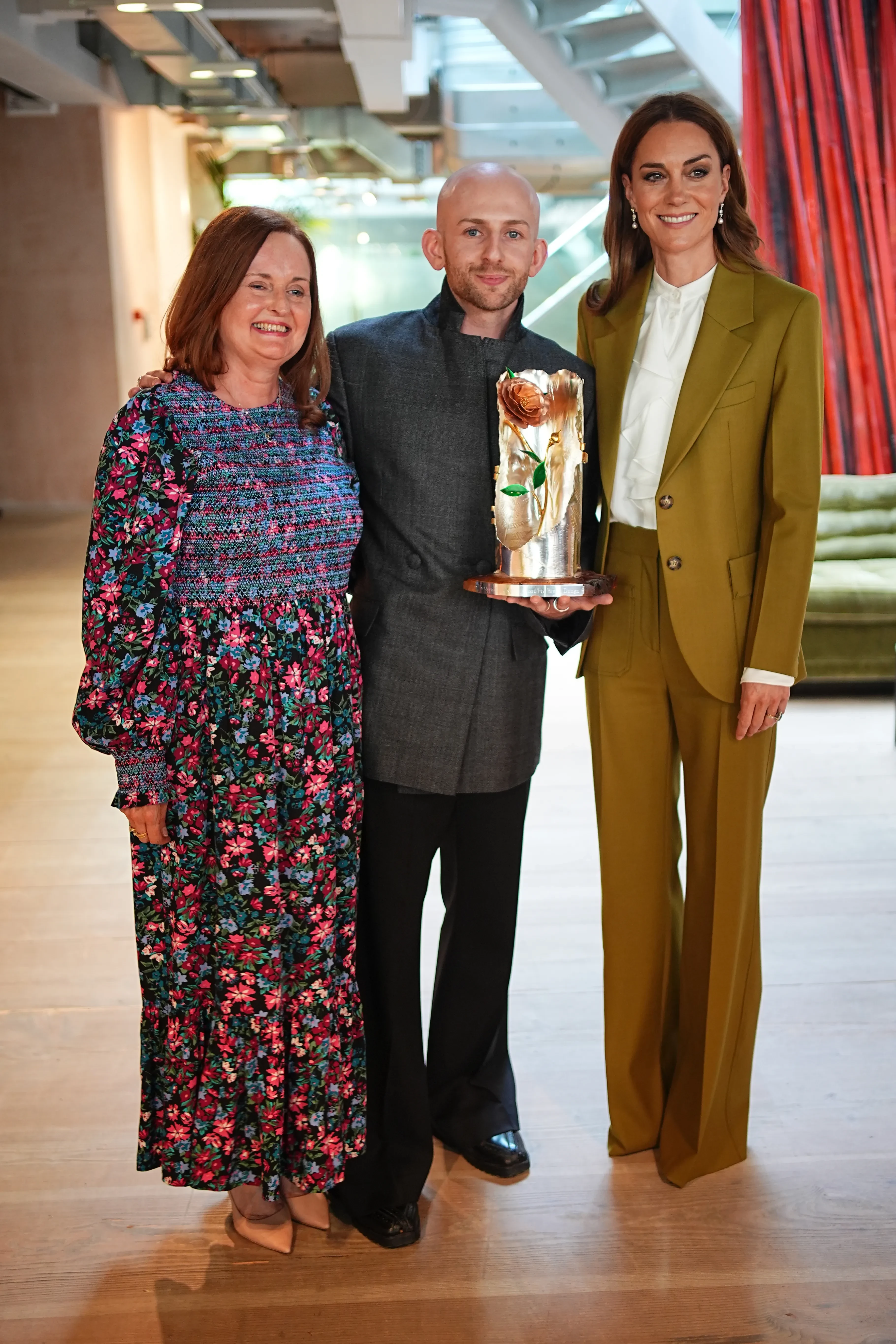 Кейт МиддлтонПремия, учреждённая в 2018 году Елизаветой II, вручается ежегодно за вклад в развитие британской моды. В этом году трофей в виде королевской розы Кейт самолично вручила дизайнеру Патрику Макдауэллу, в портфолио которого — сотрудничество с такими брендами, как Louis Vuitton, Burberry, Gucci и Prada. В ходе мероприятия принцесса также пообщалась с представителями британской фэшн-индустрии, отметив важность поддержки локальных брендов и молодых дизайнеров.