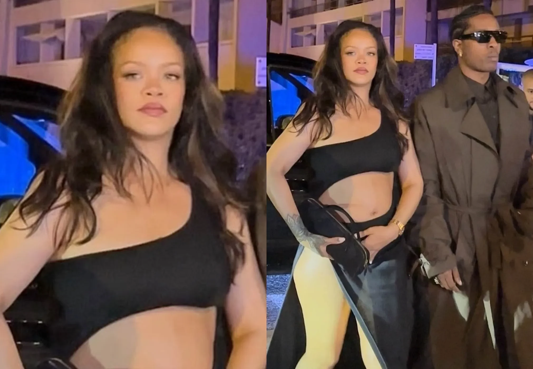 37-летняя певица, известная своими яркими "беременными" выходами, отправилась на прогулку в чёрном платье с разрезами на бёдрах и животе. Звезда дополнила образ прозрачными босоножками и клатчем. Рэпер A$AP Rocky, с которым Рианна воспитывает двоих детей, оделся теплее — в тренч с брюками и ботинки, дополнив образ солнцезащитными очками.