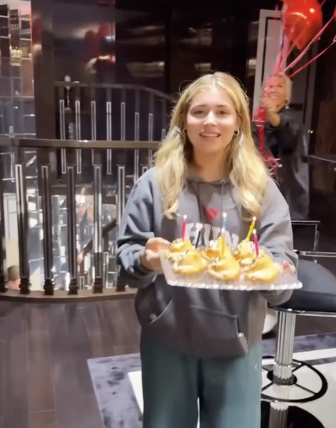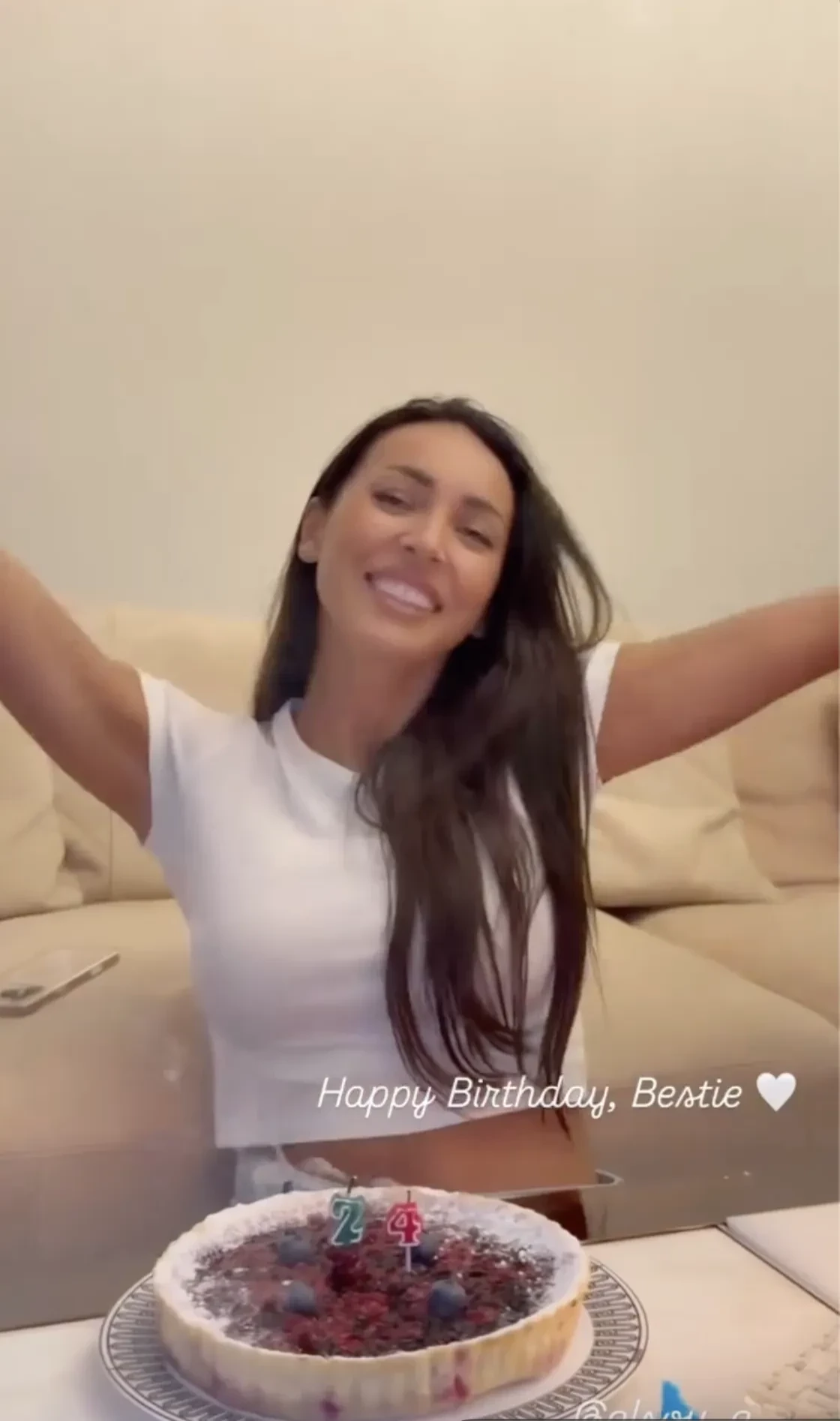 Ровно в полночь подруги Алсу и 17-летняя Микелла пришли поздравить именинницу с праздничным пирогом и свечами с цифрой "24", пирожными, бенгальскими огнями и шариками. "Традиция каждый год в 00:00. Мои любимые девочки. Спасибо, люблю", — написала певица в сторис*.