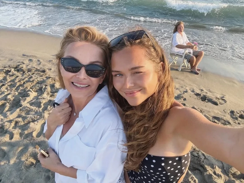"Просто любовь. Самая настоящая", — подписала Стеша селфи, на которых она позирует с матерью на пляже, пока Дмитрий Маликов сидит на заднем фоне на стуле.