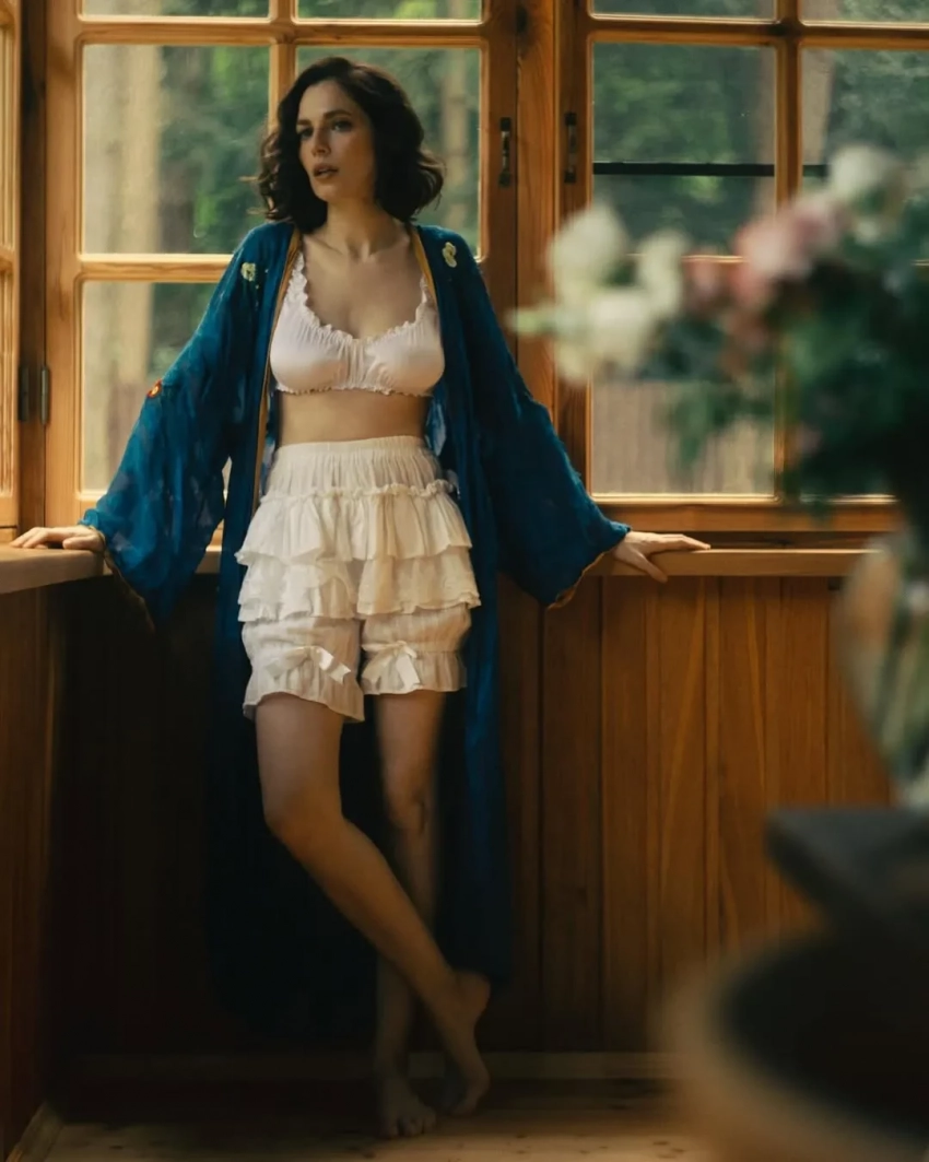 42-летняя Юлия Снигирь опубликовала в соцсетях снимки из новой фотосессии. На фотографиях актриса и супруга Евгения Цыганова позирует в образе Белоснежки в белом нижнем белье в ретростиле и синем халате.
