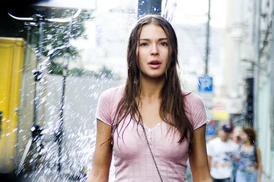 Агния Дитковските и Алексей Чадов в фильме "Жара" (2006)/Фото: кадр из фильма/Art Pictures StudioАгния Дитковските в фильме "Жара" (2006)/Фото: кадр из фильма/Art Pictures StudioАгния Дитковските и Алексей Чадов в фильме "Жара" (2006)/Фото: кадр из фильма/Art Pictures StudioМелодрама Резо Гигинеишвили "Жара" почти 20 лет назад сделала 17-летнюю Агнию Дитковските звездой, а её героиня Настя запомнилась многим зрителям. В одной из самых узнаваемых сцен фильма, когда на Настю выливают ведро воды, а герой Алексея Чадова приходит ей на помощь и влюбляется, она одета в простой, но запоминающийся образ — розовую футболку и джинсовую мини-юбку, тогда такая была в гардеробе у каждой. Экранная история любви, кстати, вскоре стала реальностью: актёры закрутили роман, который продлился несколько лет. Повторить образ Агнии сегодня легко: футболку заменим на кардиган с завязками, а модные тогда замшевые сапоги на плоской подошве — на казаки.Кардиган Befree