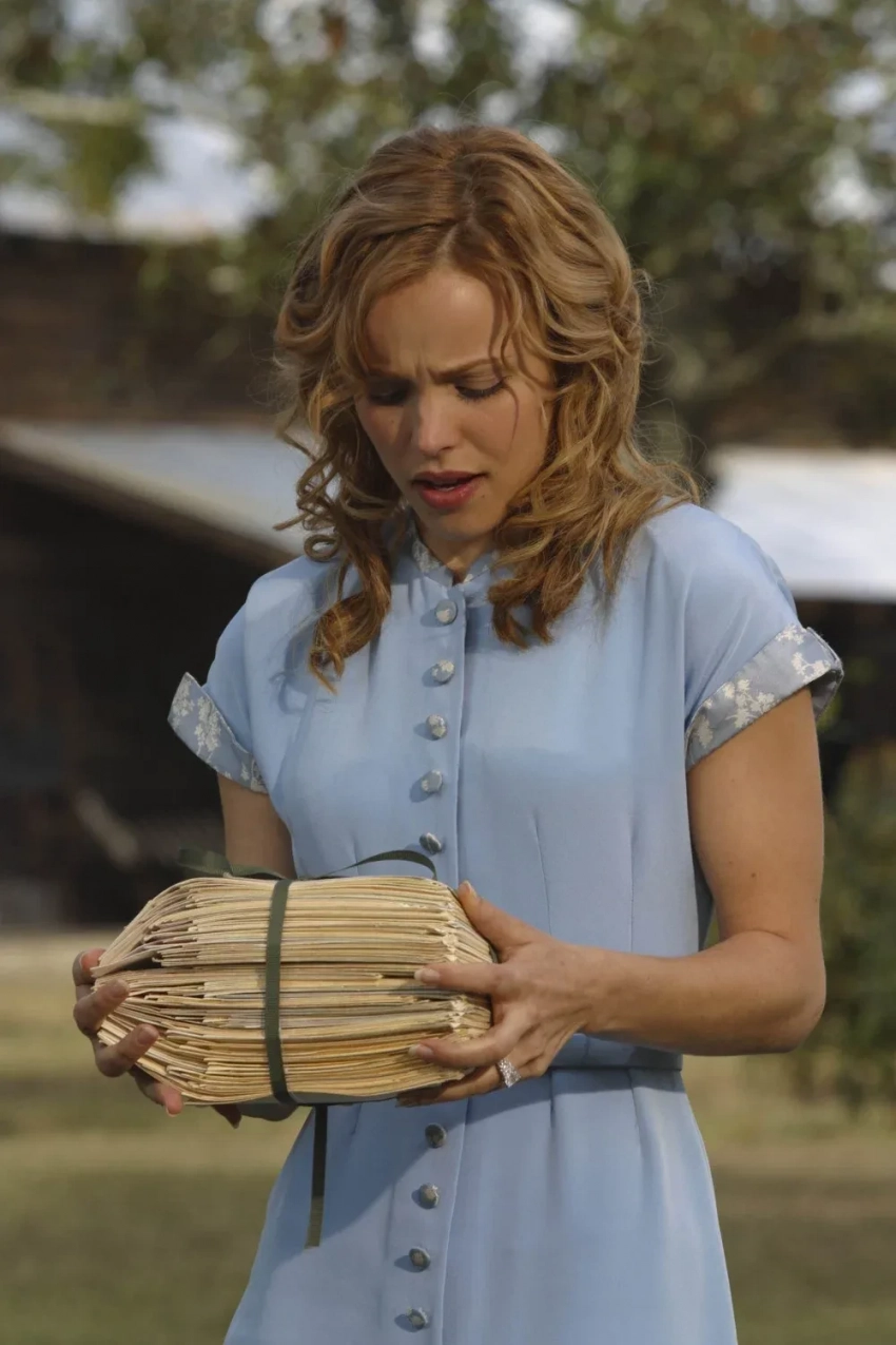 Рэйчел МакАдамс в фильме "Дневник памяти" (2004)/Фото: кадр из фильма/New Line CinemaРэйчел МакАдамс в фильме "Дневник памяти" (2004)/Фото: кадр из фильма/New Line CinemaРайан Гослинг и Рэйчел МакАдамс в фильме "Дневник памяти" (2004)/Фото: кадр из фильма/New Line CinemaРайан Гослинг и Рэйчел МакАдамс в фильме "Дневник памяти" (2004)/Фото: кадр из фильма/New Line CinemaВ фильме "Дневник памяти", одном из самых романтичных, героиня Рэйчел МакАдамс, Элли, одевалась модно по меркам 1940-х. Пожалуй, больше всего Элли запомнилась зрителям в голубом платье приталенного силуэта, когда она целовалась под дождём с любовью своей жизни Ноем (Райан Гослинг). Актёры не просто сыграли влюблённых, но и закрутили роман на съёмках, который продлился целых четыре года. Эта сцена стала культовой и даже получила награду MTV. А повторить образ Элли легко с помощью похожего голубого платья в модный цветочный принт Befree или Gate31.Хочется отметить ещё один наряд Элли, который она надела на свидание с Ноем, — красное мини-платье с геометричным принтом. Его можно заменить на более стильную версию — приталенное платье в клетку No. 21.