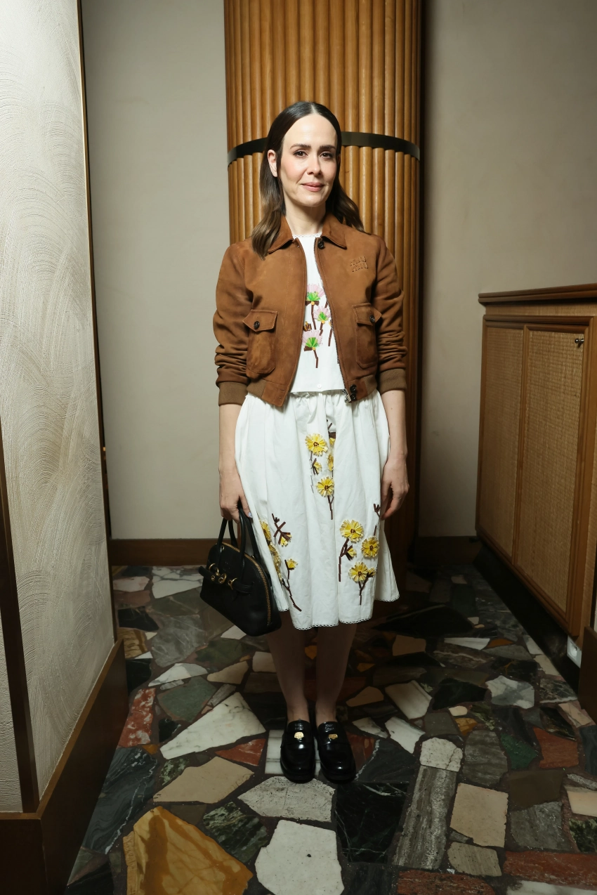 Эвер Андерсон посетила мероприятие в "мятом" розовом платье, а 41-летняя Лотта Волкова надела образ из новой коллекции. Сидни Суини сменила кожаный комплект, в котором она была на шоу, на платье в горошек, а 50-летняя Сара Полсон позировала в цветочном платье.