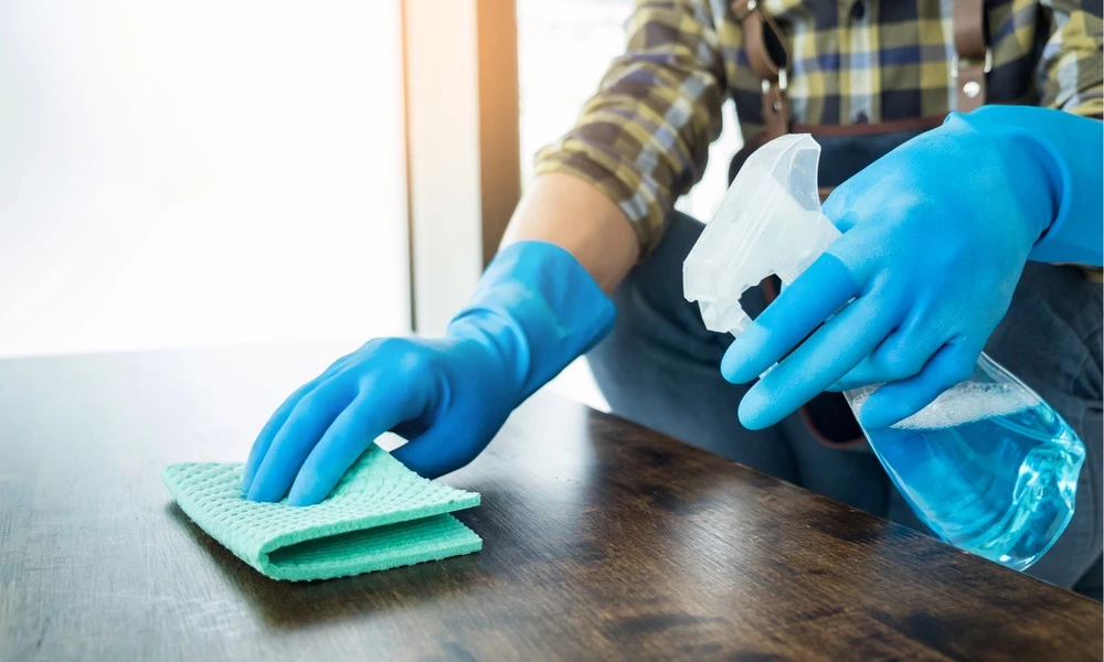 Приготовив спрей, просто распылите его на тряпку из микрофибры и тщательно протрите все поверхности. Средство подходит для деревянной и ламинированной мебели, но избегайте использования на чувствительных к кислотам поверхностях (например, мрамор).